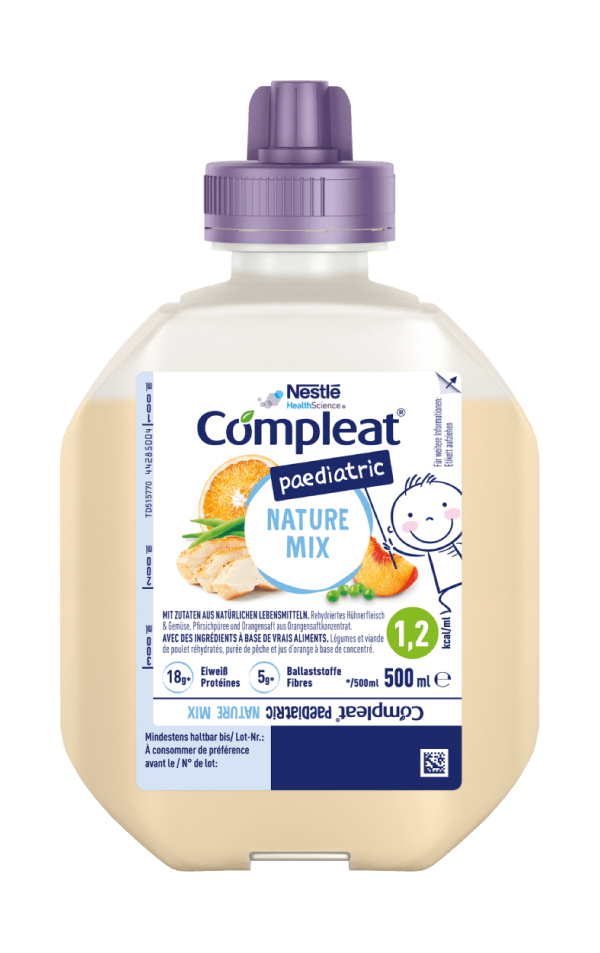 WICHTIGER HINWEIS: Unter ärztlicher Aufsicht verwenden. Compleat® Nature Mix 1.5 Protein ist geeignet ab 11 Jahren. Compleat® Nature Mix ist geeignet ab 3 Jahren. Compleat® Paediatric Nature Mix ist geeignet ab 1 Jahr. Als einzige Nahrungsquelle geeignet. Nicht zur parenteralen Verwendung.